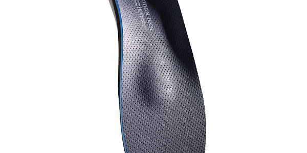 Ортопедические стельки Motion Tech со смягчающим слоем из материалов Bouncepur / Memopur® и новым каркасом укороченной длины с отверстием каплевидной формы. Материал Bouncepur за счет ячеистой структуры обладает высокими амортизационными свойствами, что обеспечивает повышенную медицинскую эффективность. Пяточное отверстие, за счет увеличенного размера, разгружает большую часть подошвенного апоневроза. Стелька имеет метатарзальный валик среднего размера, выраженную выкладку сводов, боковую поддержку и чашеобразное углубление для пятки. Верхнее покрытие стельки изготовлено из материала Sahara Skin темно-синего цвета.